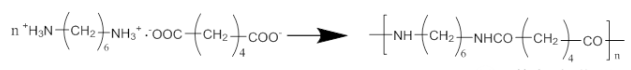 尼龍66鹽在高溫下脫水縮聚生成尼龍66。其反應(yīng)式如下:
